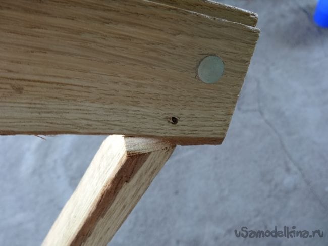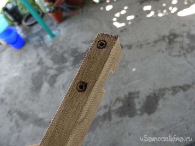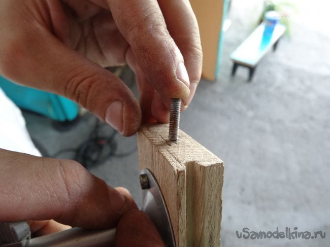 Фиксироваться дощечки относительно друг друга будут как раз при помощи барашков, которые накручиваются на вклеенные шпильки.