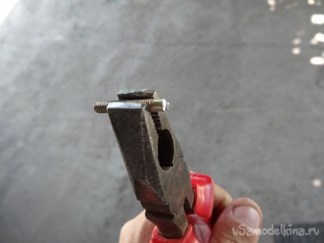 Для лучшего зажима я подложил под каждый из барашков небольшую шайбочку.