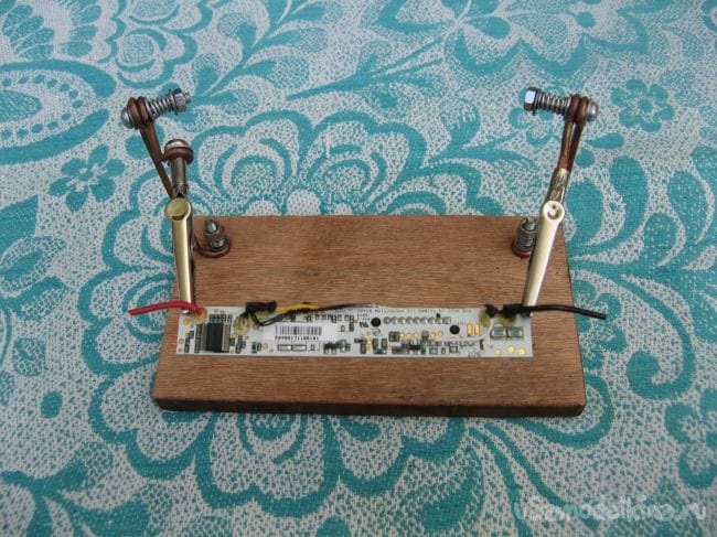 Когда паяешь что-то очень маленькое, нагревом обжигаем пальцы, тогда задумываемся о помощнике. Ну а главный помощник при данной проблеме - это третья рука. Еще в школе я делал подобное приспособление из прищепок прикрученных на брусок. Конструкция обладает ограниченной маневренностью и отличной цепкостью, за счет использования зажимов типа «крокодил».