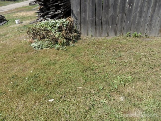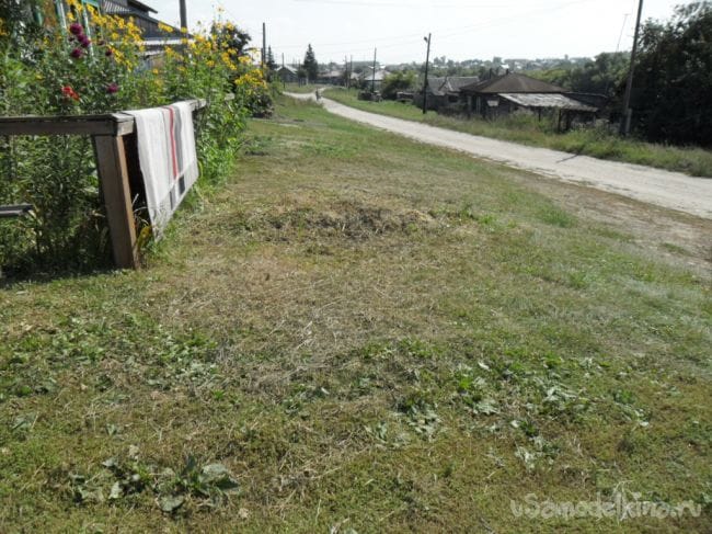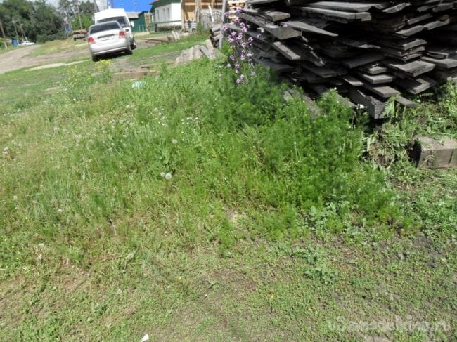 Супруга руками и с помощью тяпки повоевала около часа с нашествием оккупантов, а потом сказала: « Ваш выход, маэстро, здесь справится только коса.» и удалилась восвояси.