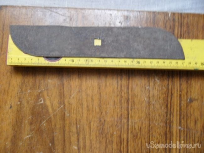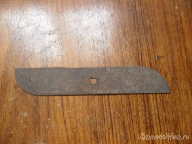На валу двигателя по центру просверлил отверстие, в нем нарезал резьбу М 6, а кончику вала напильником придал квадрат для качественного крепления режущего ножа косилки.