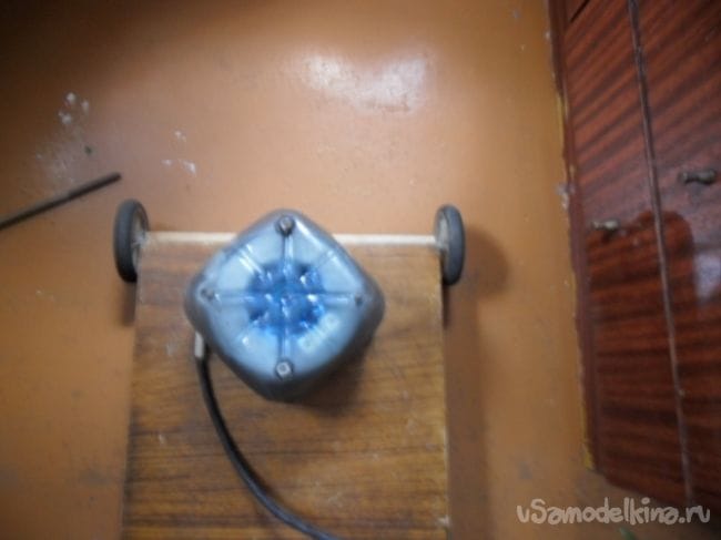 Сверху электродвигатель защитил кожухом из пластикой емкости.