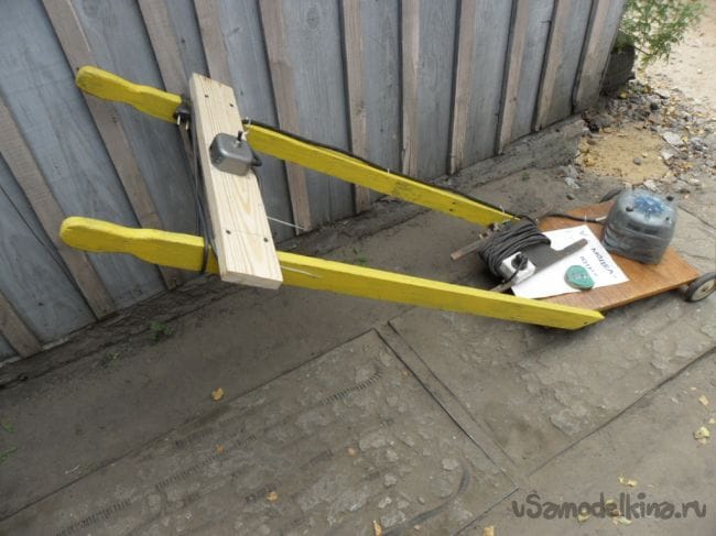 Ручки электрокосилки изготовил из деревянных штакетин,