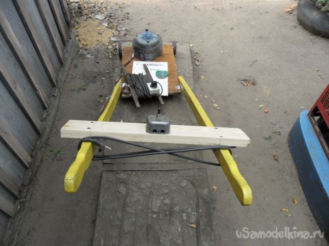 на ней же смонтировал трехпозиционный тумблер для запуска и работы электродвигателя.