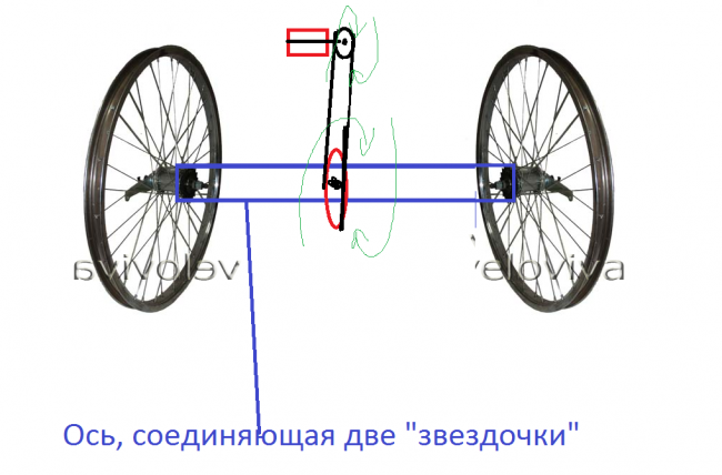 Думаю, как сделать аналог дифференциала. Что если взять два задних колеса велосипеда и приварить ось к "звездочкам".