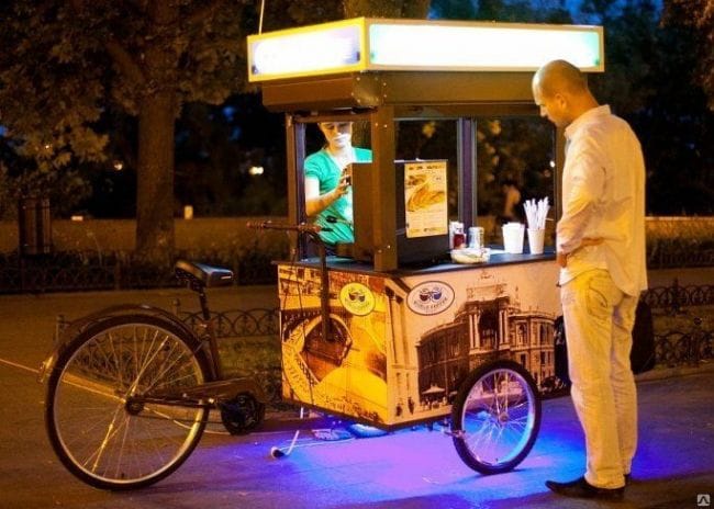 В Европе и на Западе такой вид велосипеда давно используется как альтернатива торговой точки ( нашему киоску).