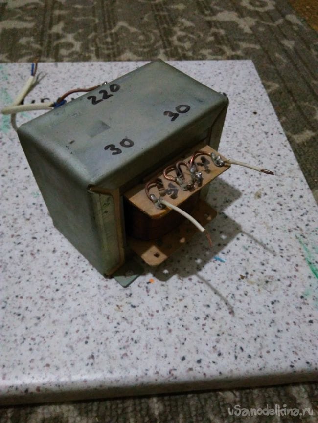 Правда в нем намотка проводов немного изменена, вместо первичной обмотки, идет вторичная.