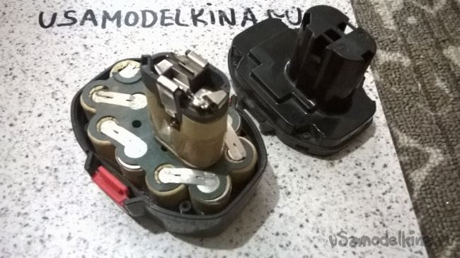 Разбираем блок аккумуляторов, и отсоединяем от него две верхних аккумуляторных блоков, для подсоединения с самому шуруповерту. Остальное выбрасываем.