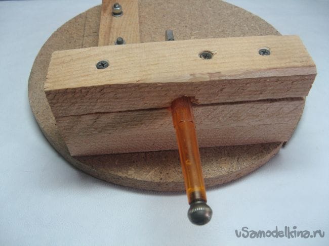 В роли основы у меня кругляш оставшийся от какой-то самоделки или еще чего. Сам уже не помню. Можно вырезать любой конструкции, особого значения не имеет. Главное чтоб наша бутылка большей своей счастью помещалась на нашу заготовку.