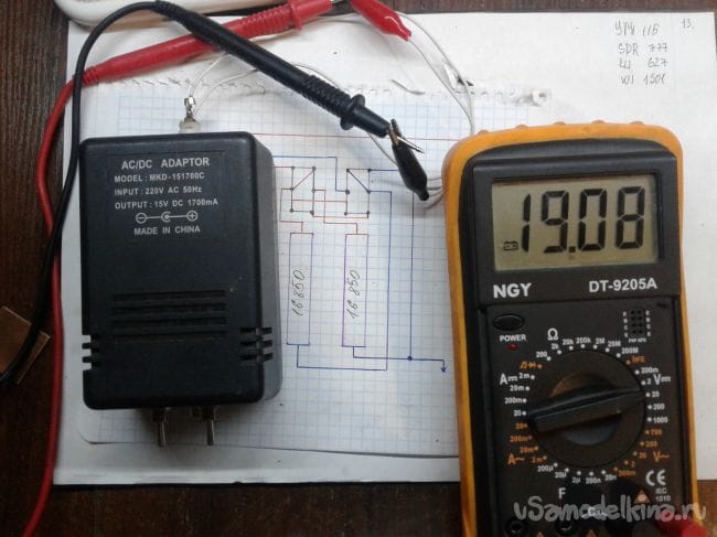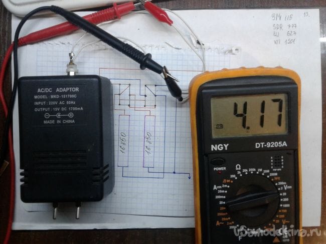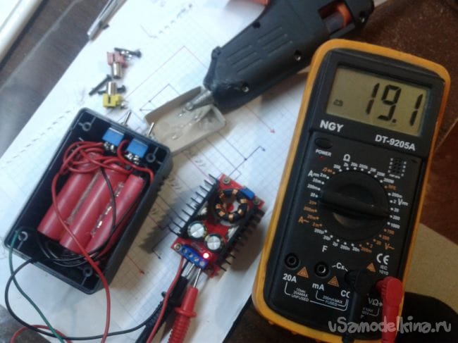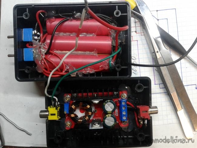 3 последовательно включённых аккумулятора (18650) выдают 12 v далее стоит dc-dc повышающий модуль
