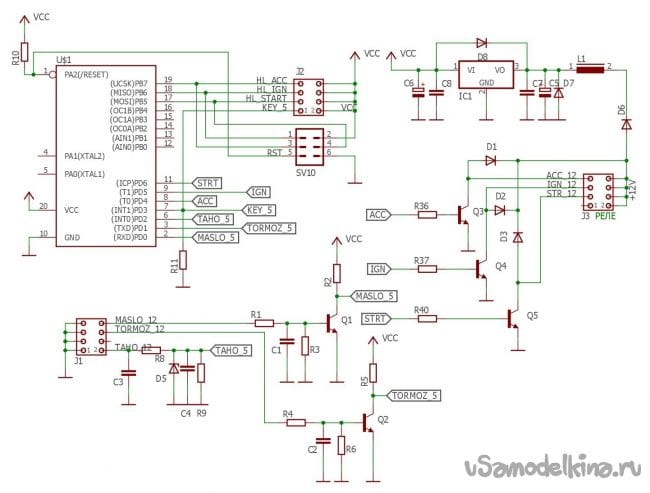 И решился повторить кнопку Старт/Стоп по схемам найденным на просторах интернета. Но как и всегда что то там не досказано, не додумано и контроллер чересчур запасливый. Пришлось делать с нуля.