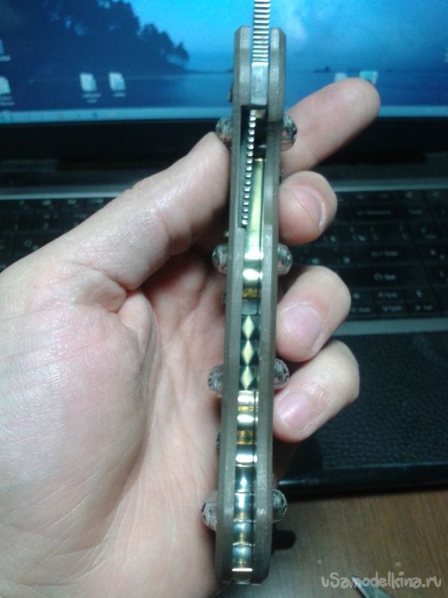Здесь на накладке еще все не аккуратно, потом я переделал, силиконовая смазка сравняла цвет после абразива.