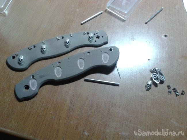 Здесь конечно хотелось сделать ей новый спейсер, но мой интерес зашел дальше, решил сделать новый плашки, эта модель как бы ими выделяется, если у спайдерко они спрятаны внутри рукояти, то тут они сразу видны. С родными особо не интересно, титан есть. делаем новые.