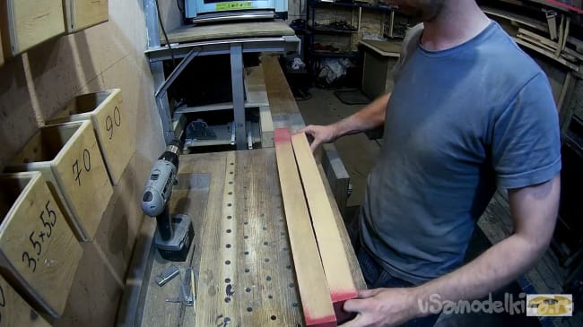 Для начала нужно прогнать все доски из бука на рейсмусе, делается это для того, чтобы толщина их была одинаковой.