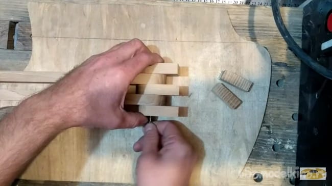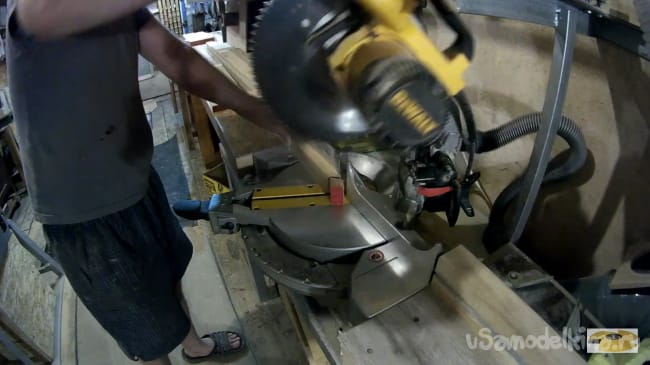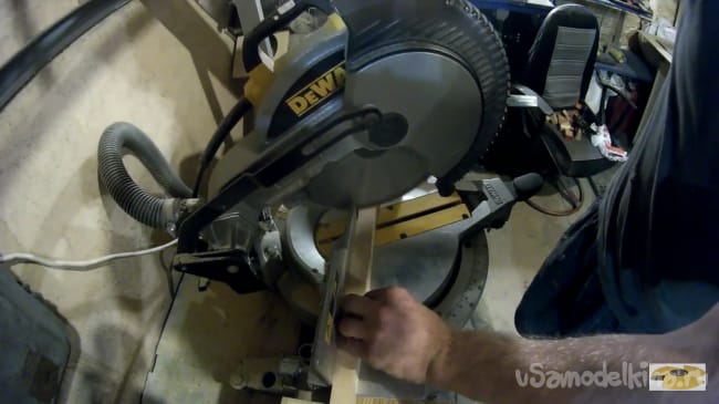 После чего распиливаем широкую доску на маленькие дощечки, шириной приблизительно 5см, из них и будет состоять голова лампы.