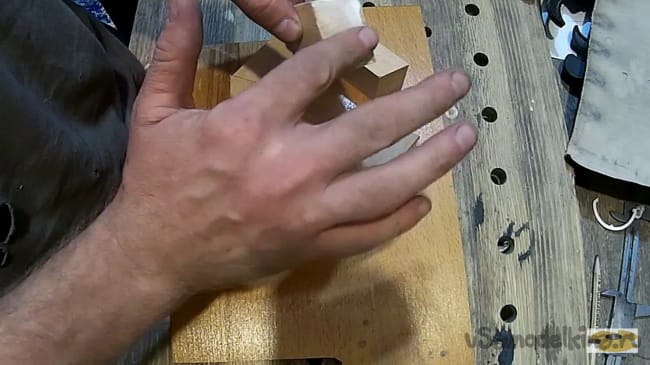 Когда все 8 заготовок подогнаны под размер их можно склеивать, поможет нам в этом клей для дерева. Перед склейкой необходимо зашлифовать склеиваемые поверхности, чтобы улучшить пятно контакта.