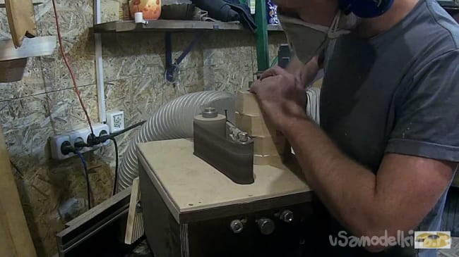 Склеиваем четыре восьмиугольника в одно целое, после высыхания шлифуем на шлифовальном станке до получения формы, схожей с вазой.