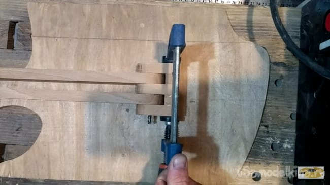 Для прочного склеивания воспользуемся струбцинами, а лучше сразу тремя.
