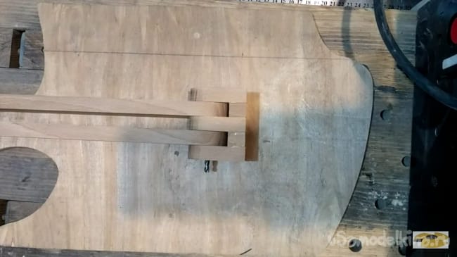 Затем нужно сделать три маленьких дощечки, примыкающие как к голове лампы, так и к основанию, которые также будут скруглены с одной стороны, а для их склейки между собой понадобятся две маленькие заготовки, как на фото.