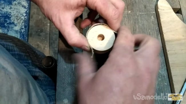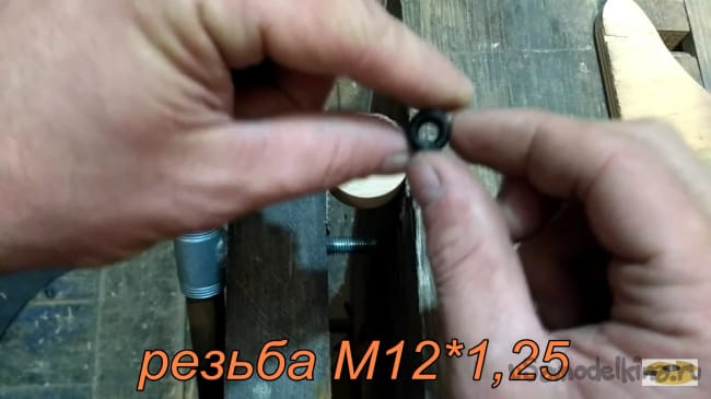 По середине сверлим глухое отверстие и вклеиваем втулку с резьбой М12 шагом 1,25 на суперклей и вкручиваем до упора.