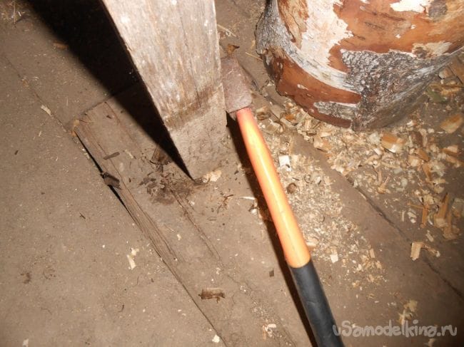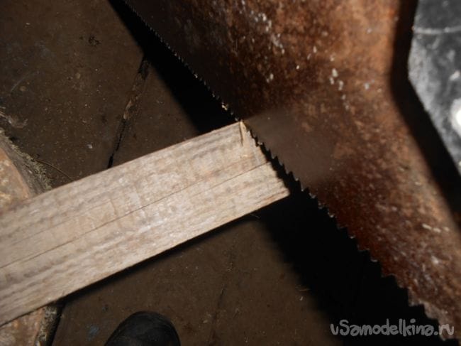 1 Шаг. Сперва нужно заточить топором 3 штуки штакета. Как показано на фото.