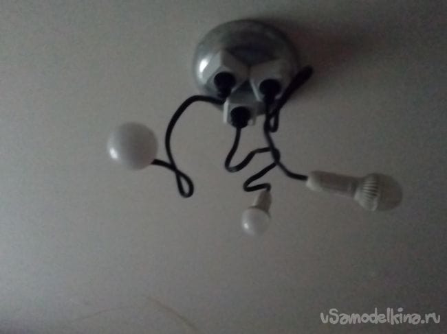 Провод нужно взять жесткий тогда можно будет изгибать лампы по вашему вкусу и можно использовать розетки у люстры для разных нужд например подключать в новый год гирлянду или еще что-нибудь