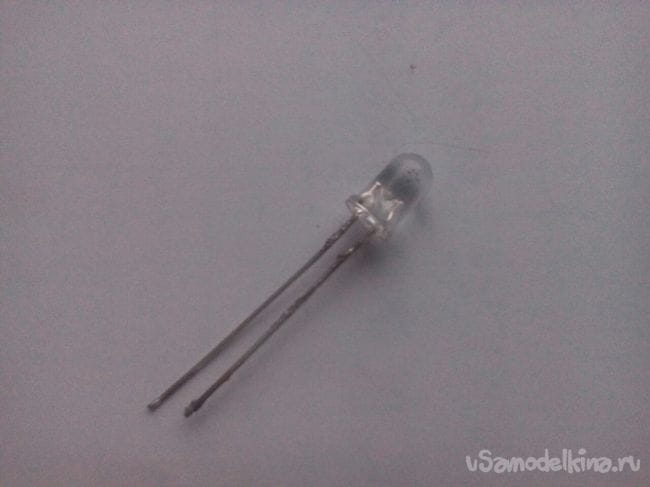 Светодиод 4-5 Вольт (всё зависит от напряжения, которым будем питать схему)