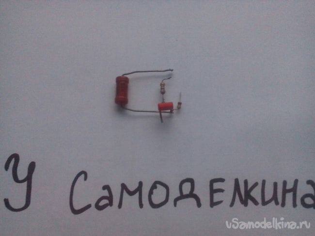 К левому, к эмитеру припаиваем R1 (1 кОм)