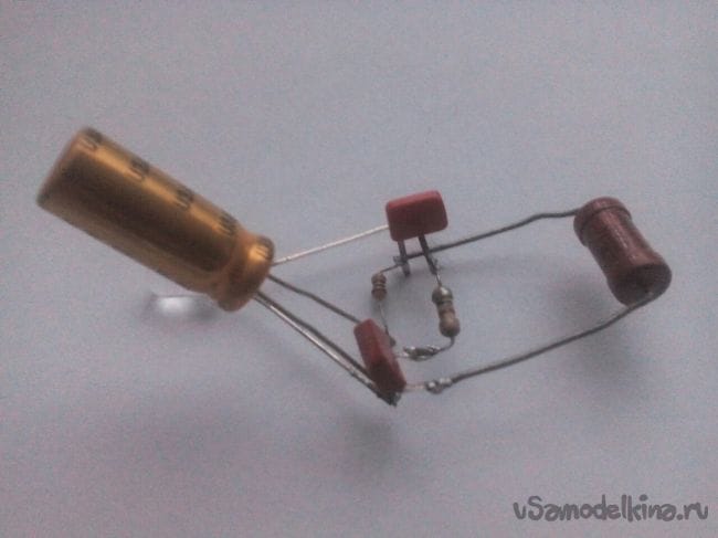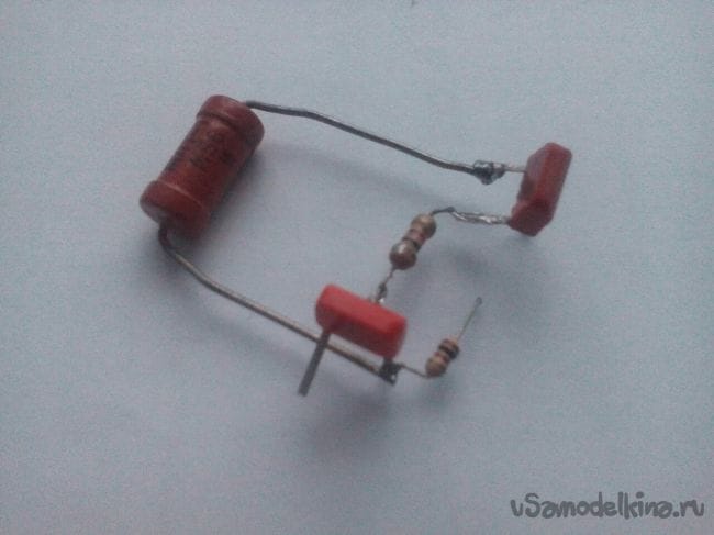 1. Спаиваем транзистор КТ361 и 3 резистора.