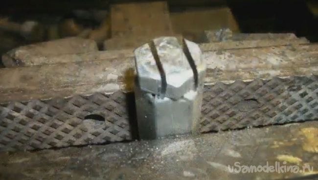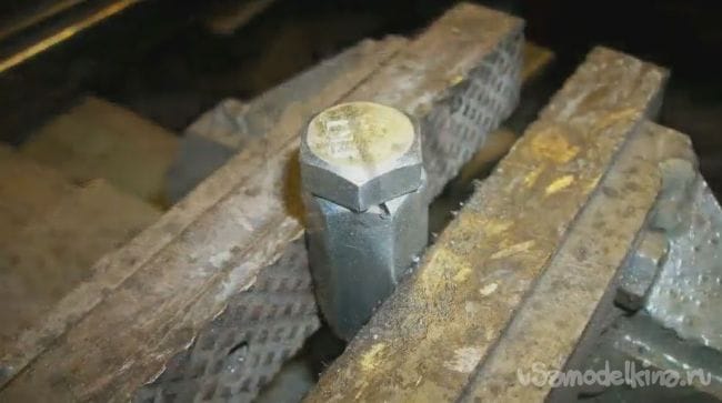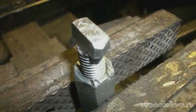 На стяжные болты(М12) накрутил соединительные гайки, зажал их в тисах и болгаркой отрезал лишнее.