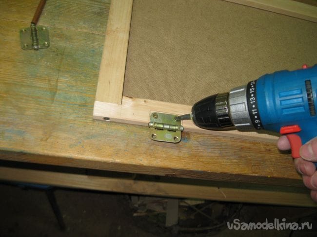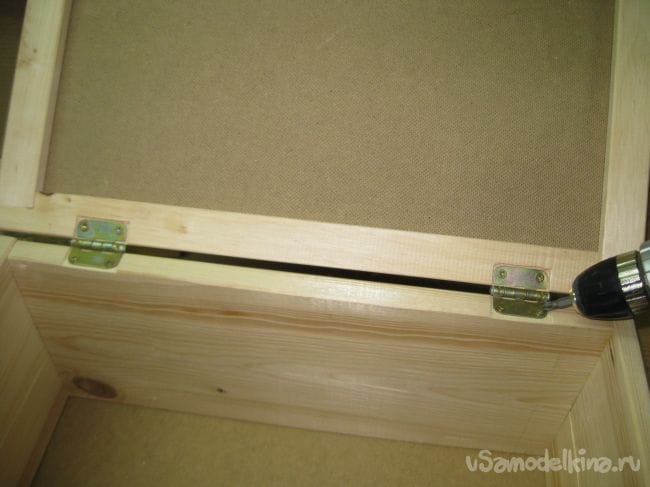Устанавливаем петли на крышку, прикручивая их мелкими шурупами.
