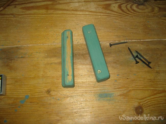 В качестве простейших ручек для ящика, можно использовать два небольших деревянных брусочка. Однако у меня уже есть готовые заготовки подобных ручек, которых я в свое время наделал десятка два, поскольку мне довольно часто приходится делать деревянные ящики или контейнеры. Эти заготовки я и буду использовать.