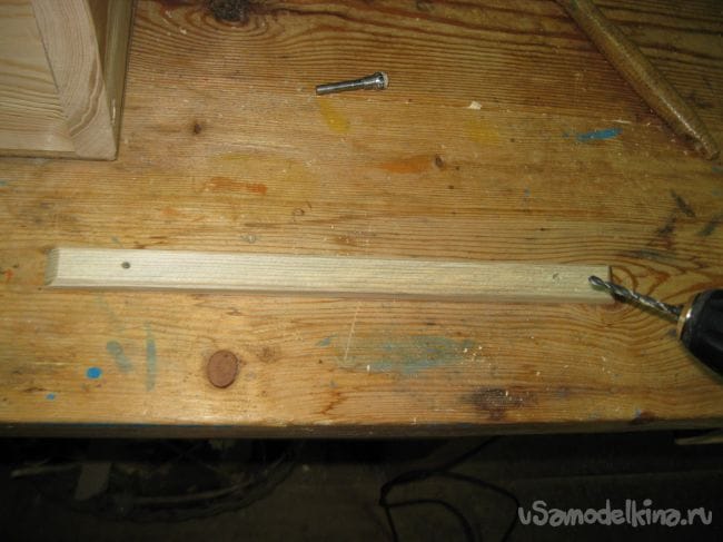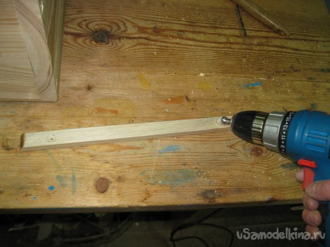 Сверлим на концах ручки для крышки, отверстия под шурпы, диаметром 4 мм.