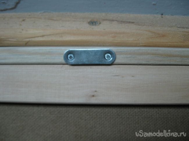 Если диагонали окажутся разной длины, рамку крышки нужно выровнять. Если диагонали равны, то можно сразу прибивать оргалит к рамке.
