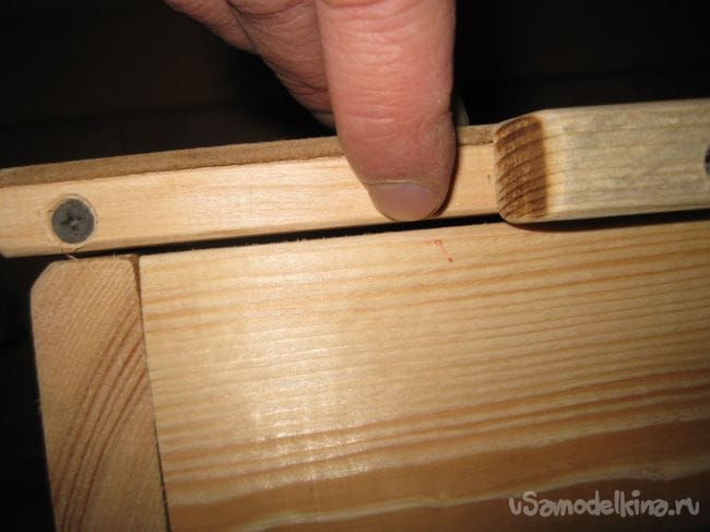 Приворачиваем их к боковым стенкам ящика, шурупами по дереву длиной 40 мм.