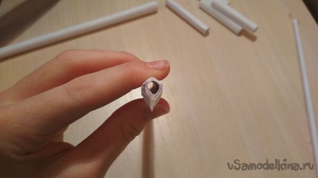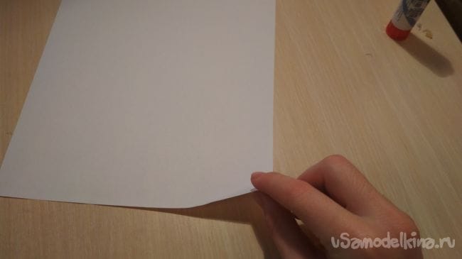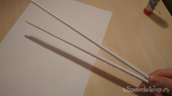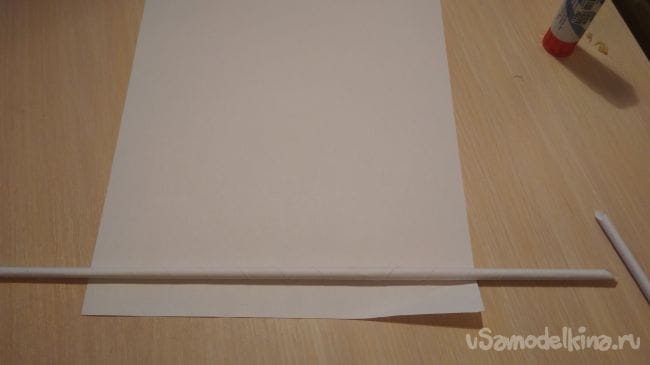 И так первым делом нужно скатать 2 тонкие трубочки, для этого берём лист бумаги и начинаем аккуратно скатывать его с краю, затем как только дойдем до конца склеиваем трубочку чтобы она не раскрутилась