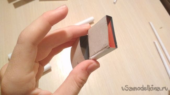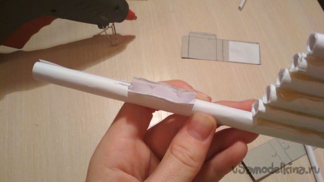 Приклеиваем оставшуюся толстую трубочку так как показано на фото: