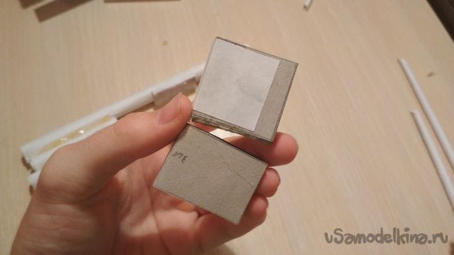 Теперь берём наши детали из картона, сгибаем по линиям и склеиваем места соприкосновения, у вас должны получиться такие же заготовки как и на фото, это наш будущий "магазин"