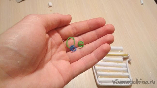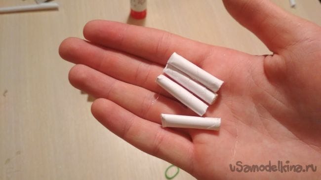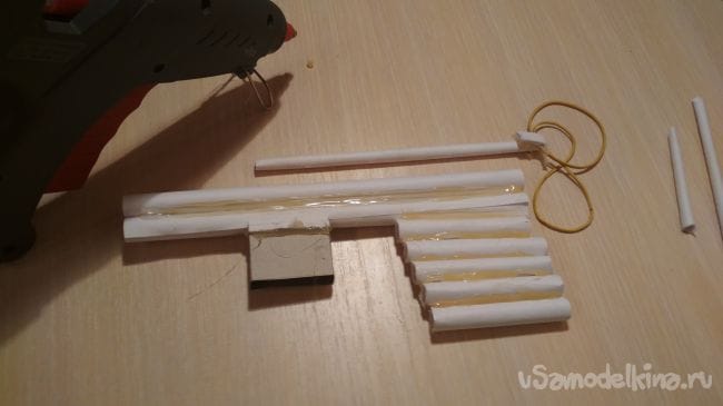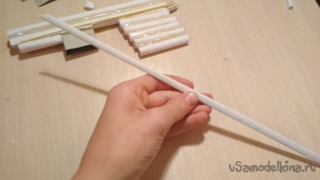 Оставшийся отрезок трубочки приклеиваем следующим образом, а на него накидываем резинки