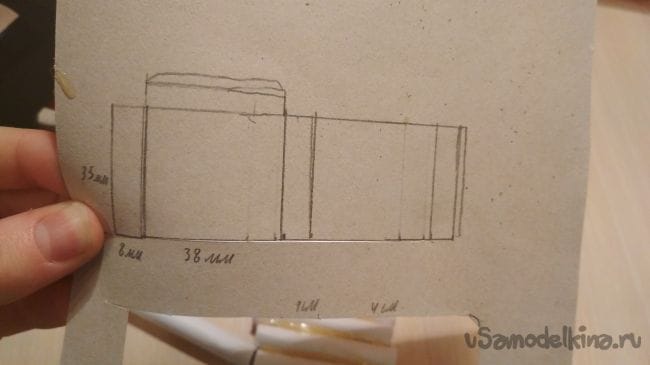 Затем берём картон и чертим на нем следующие детали (при желании можете сделать и по свои размеры, но тогда вам придется подгонять все остальное под свои размеры, у меня же уже всё подогнано):