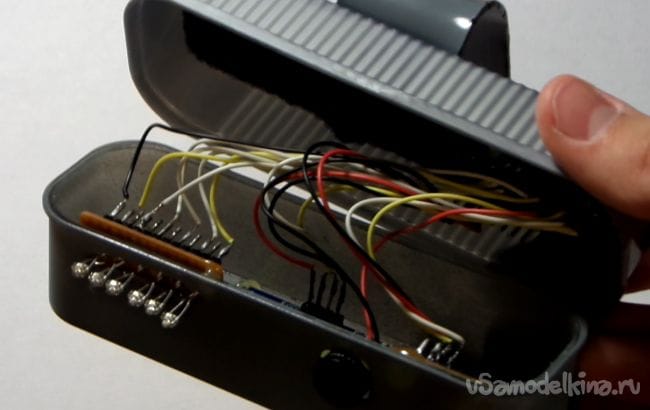Корпус устройство был сделан из коробочки от губки для обуви.