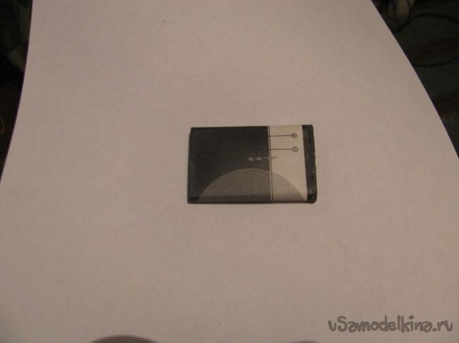 Если вы будете заряжать литий напрямую от источника питания, он быстро может прийти в негодность из-за перезаряда. Тут понадобиться контроллер, он наверняка найдется у каждого дома. Найдите старую любую батарейку от телефона, нужный нам контроллер находится в ней. Осторожно отковыряйте верхнюю пластмасску, в ней находится контроллер. Постарайтесь не оборвать два контакта на контроллере.