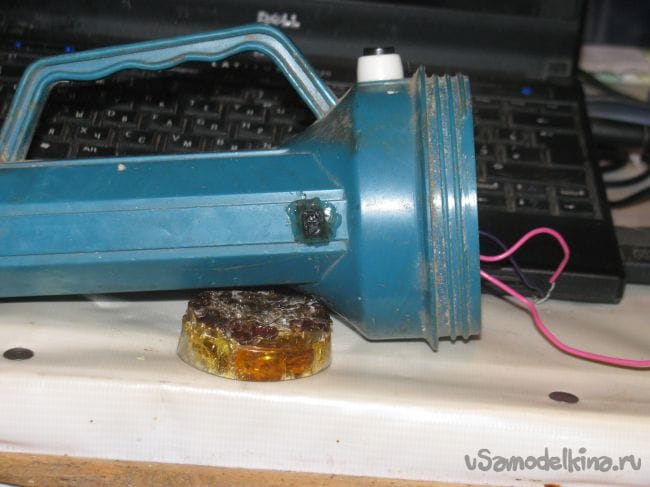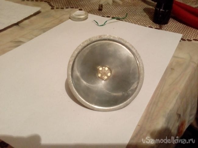 Пучок светодиодов выравниваем и затем заливаем в отражателе горячим клеем. Выровнять их довольно проблематично.
