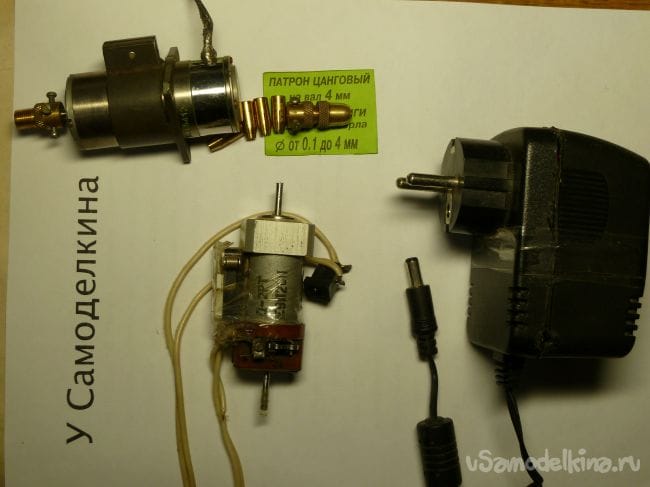 Как-то понадобилось сверлить плату под радиодетали. Шуруповерт, дрель слишком большие. Подумал и решил собрать небольшую сверлилку из того-что есть.
