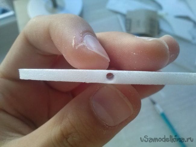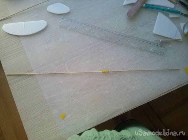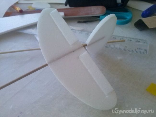 середину киля и стабилизатора протыкаем заостренной палочкой.