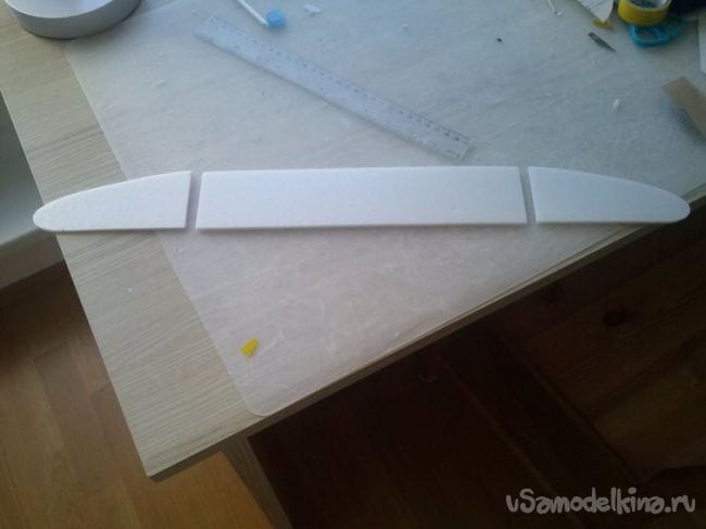 С помощью наждачки придаём крылу профиль.