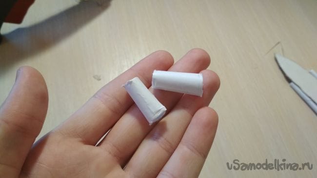 От толстой трубочки нам нужно отрезать два отрезка по 2 см каждый: