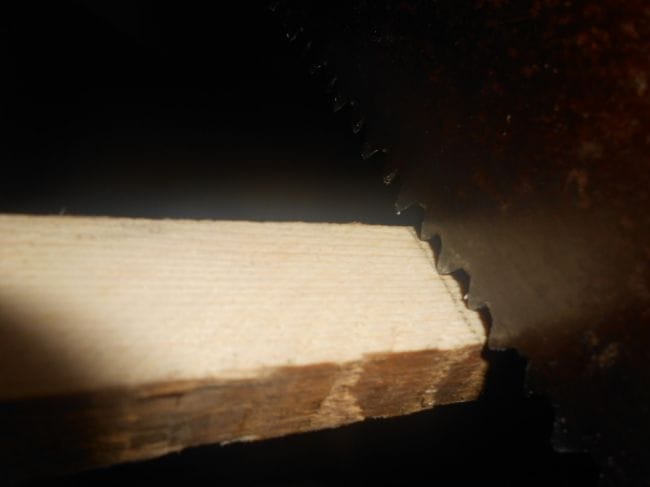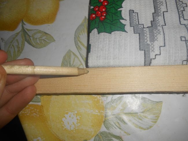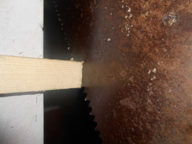 5.Шаг. После того как мы сделали отметку для спилов мы начинаем пилить их до середины на всех четырех реек . Как показано на фото .