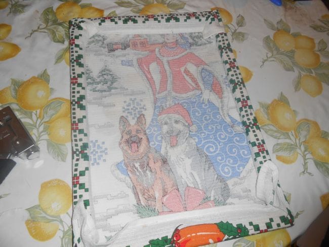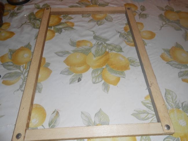 8.Шаг. Сейчас мы должны прикрепить ткань к рамке . Делаем это с помощью строительно степлера . На фото показано как и что должно у нас получиться.