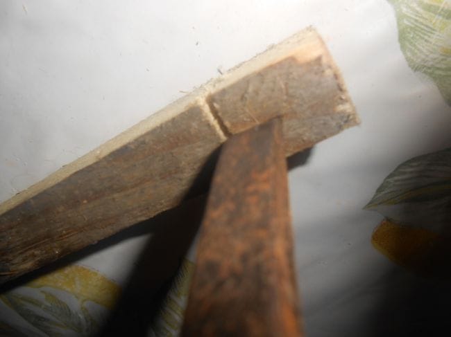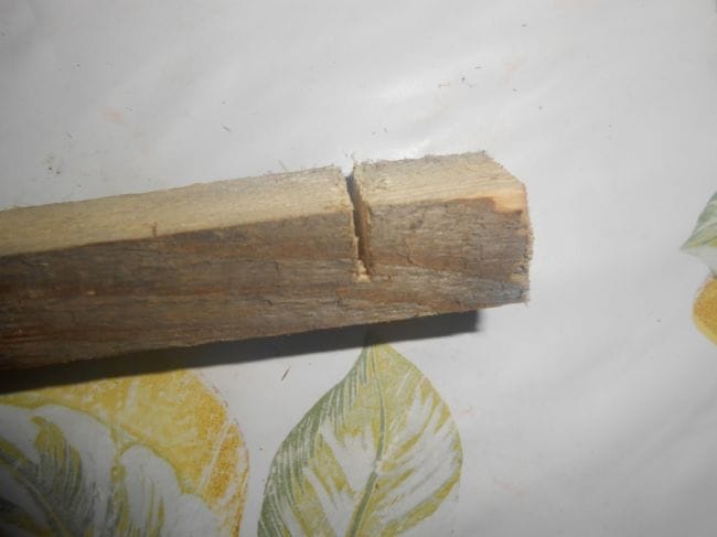 6.Шаг. Потом как мы отпилили их до середины мы начинаем откалывать эту часть стамеской.